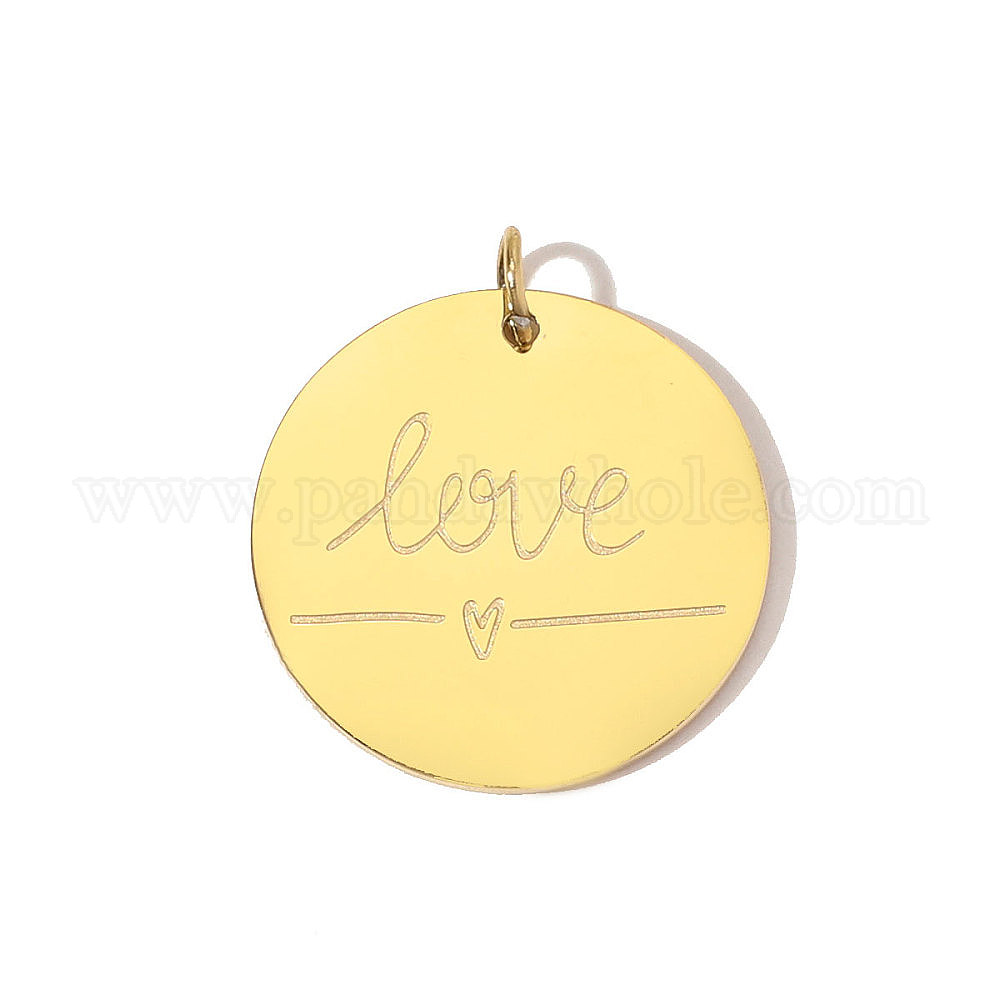 304 подвески из нержавеющей стали, плоские круглые со словесными любовными чарами, ионное покрытие (ip), зеркальная полировка