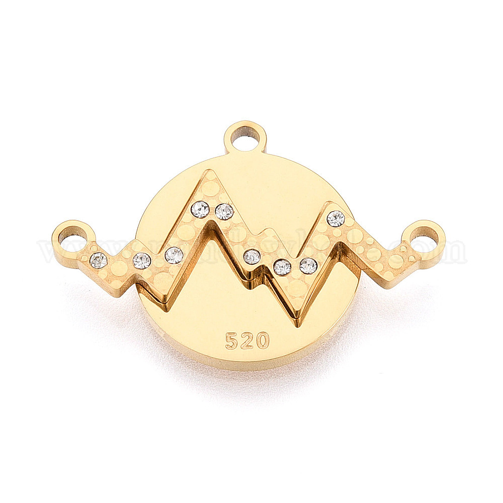 304 Подвески из нержавеющей стали с кристаллами и стразами, плоские круглые подвески и подвески в виде молний, ионное покрытие (ip)