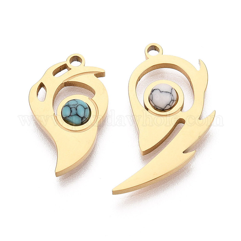 • Настоящее золото 18K 2 шт. 2 варианты дизайна 304 подвески из нержавеющей стали и синтетической бирюзы, сердце прелести, ионное покрытие (ip), реальный 18 k позолоченный, 21x24.5x3~3.5 мм, отверстие : 1.6 мм