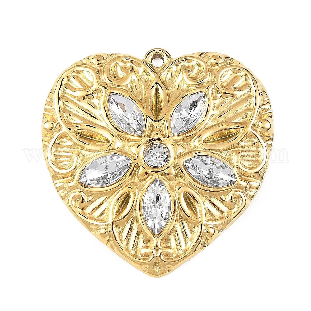 304 из нержавеющей стали с горный хрусталь подвески, сердце прелести, вакуумное покрытие pvd, реальный 18 k позолоченный
