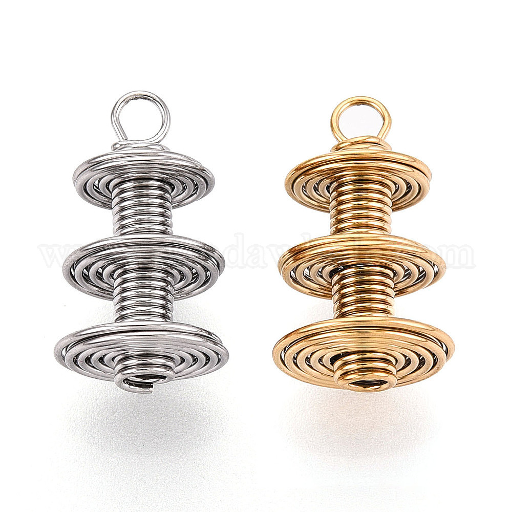 • Золотой 304 подвески из нержавеющей стали, подвески в виде спиральных катушек, золотые, 21x11.5x11.5 мм, отверстие : 2.5 мм