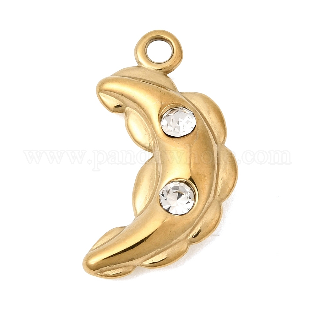 304 подвески из нержавеющей стали, прелести полумесяца, со стразами, ионное покрытие (ip)