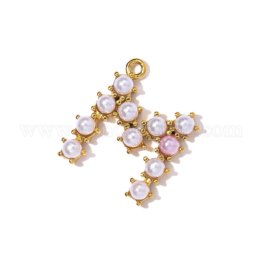 • Letter M 304 подвески из нержавеющей стали, с абс пластмассовой имитационной жемчужиной, ионное покрытие (ip), реальный 18 k позолоченный, зеркальная полировка, Буква М, 15.5x15 мм, отверстие : 1 мм