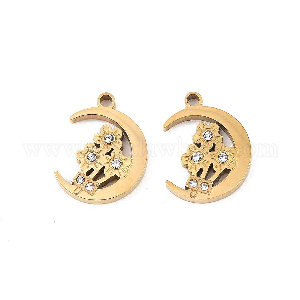 304 из нержавеющей стали с горный хрусталь подвески, луна с цветочными чарами, ионное покрытие (ip)