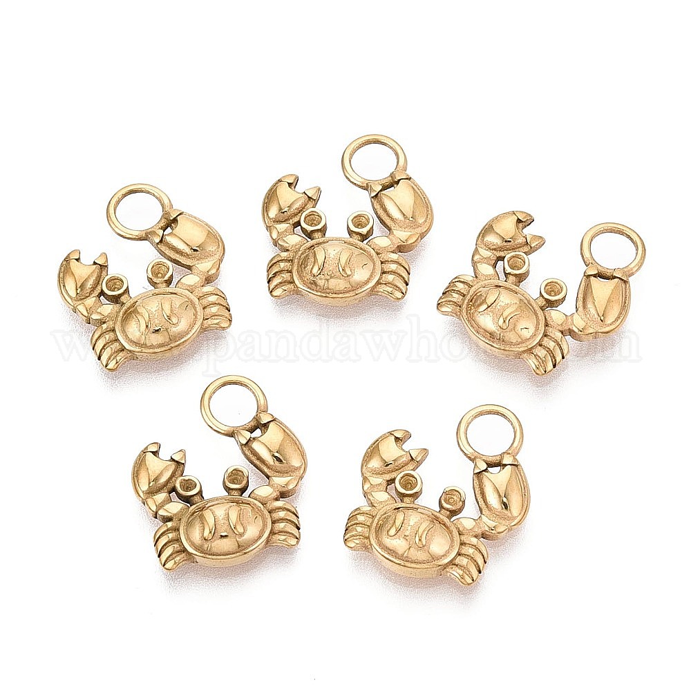 • Золотой 304 подвески из нержавеющей стали, крабовые прелести, золотые, 16x14~14.5x3.5 мм, отверстие : 3.5 мм