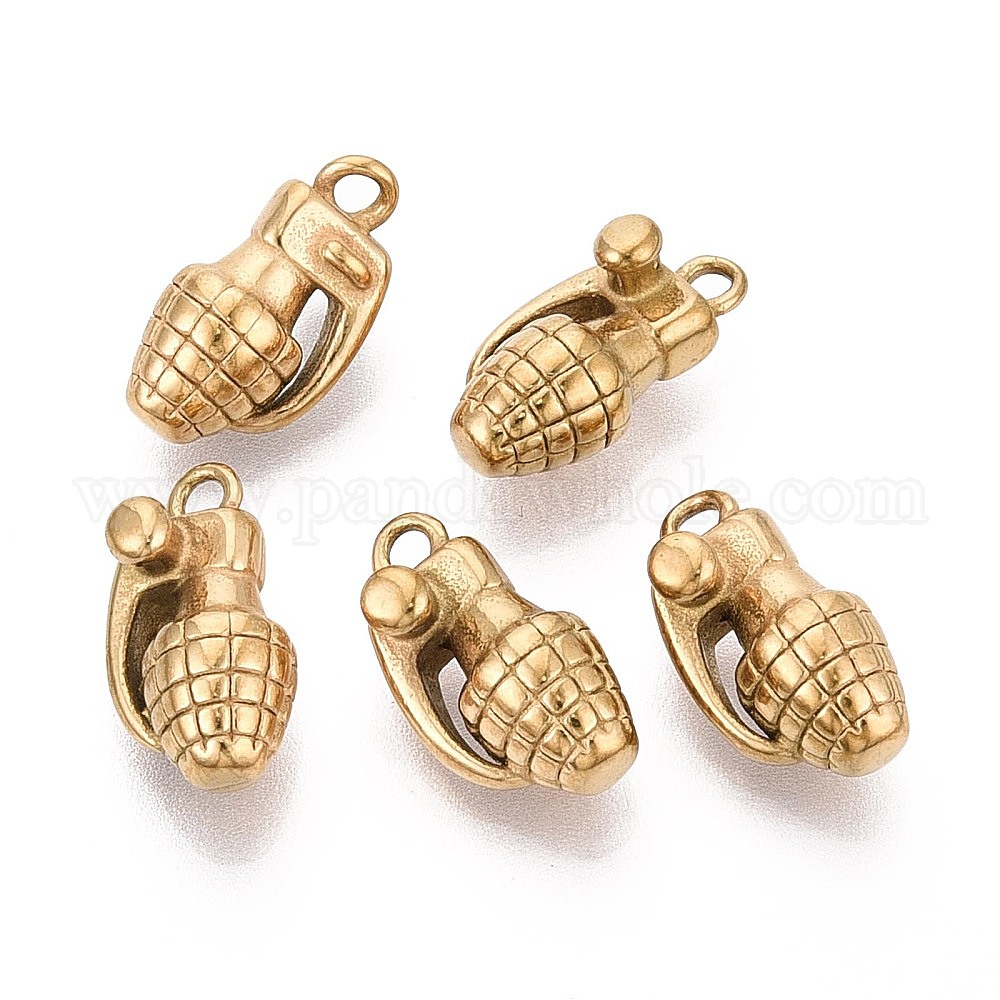 • Золотой 304 подвески из нержавеющей стали, Подвески в форме ручной гранаты, золотые, 15~15.5x8~8.5x7~7.5 мм, отверстие : 1.7~1.8 мм