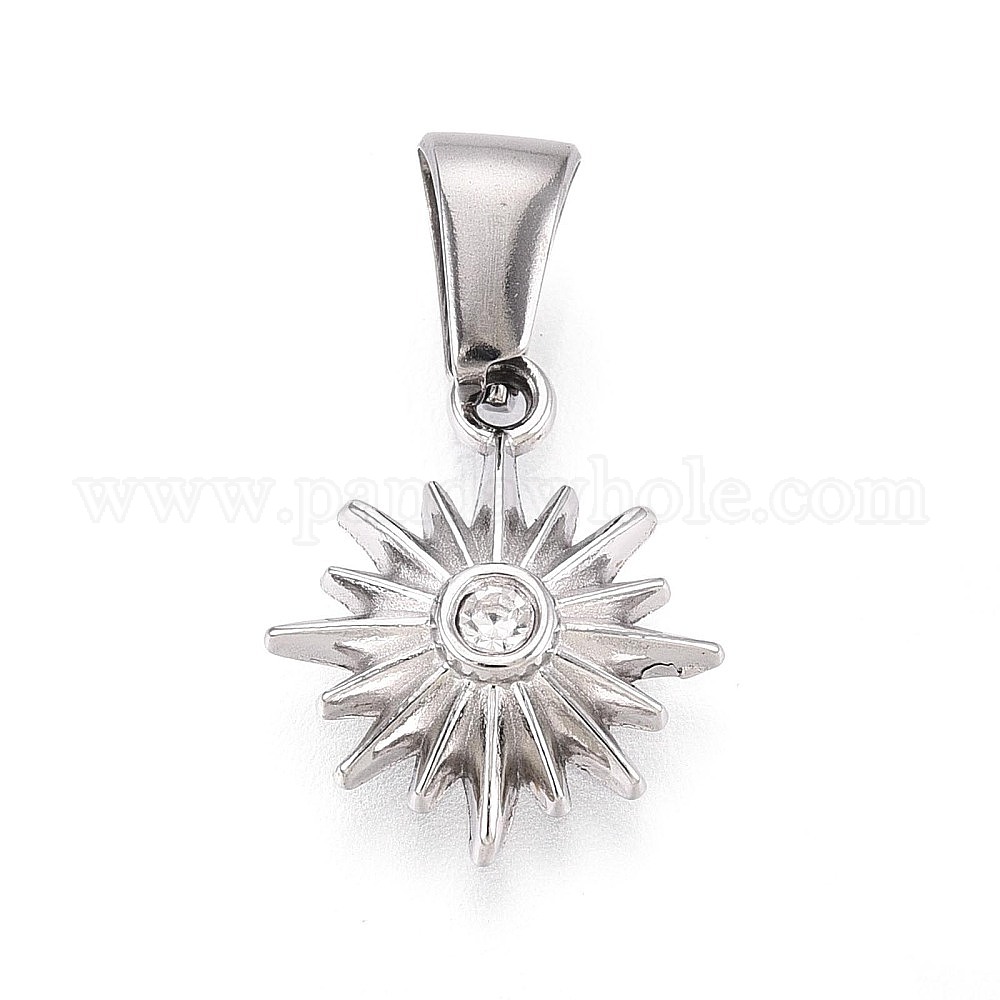 • Нержавеющая Сталь Цвет 303 подвески из нержавеющей стали, со стразами, солнечные чары, цвет нержавеющей стали, 14.5x12x2.5 мм, отверстие : 6.5x2.8 мм