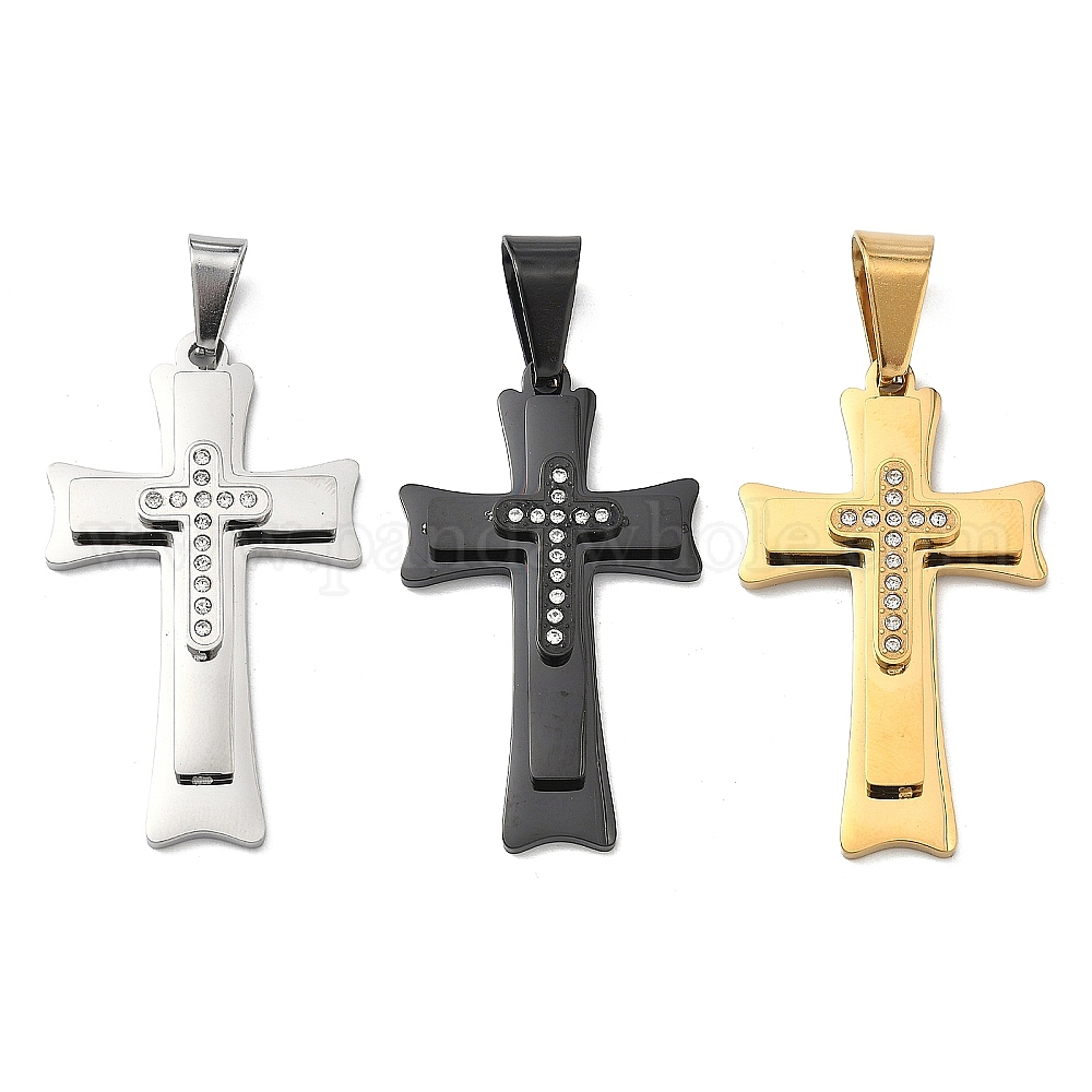 304 подвески из нержавеющей стали и страз, крест прелести, с 201 держателями для ледоруба из нержавеющей стали