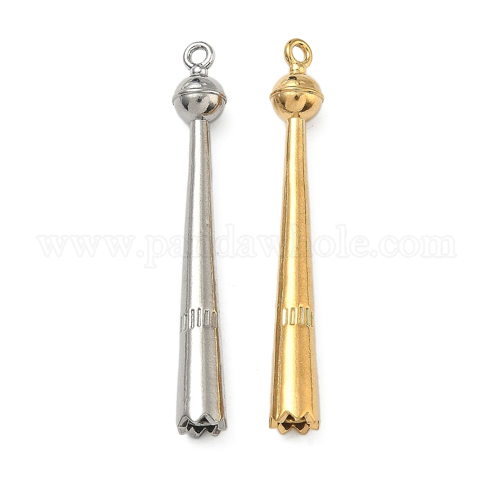 • Настоящее золото 18K 304 подвески из нержавеющей стали, длинный конусный кулон, ионное покрытие (ip), долговечный, реальный 18 k позолоченный, 50x6 мм, отверстие : 1.8 мм