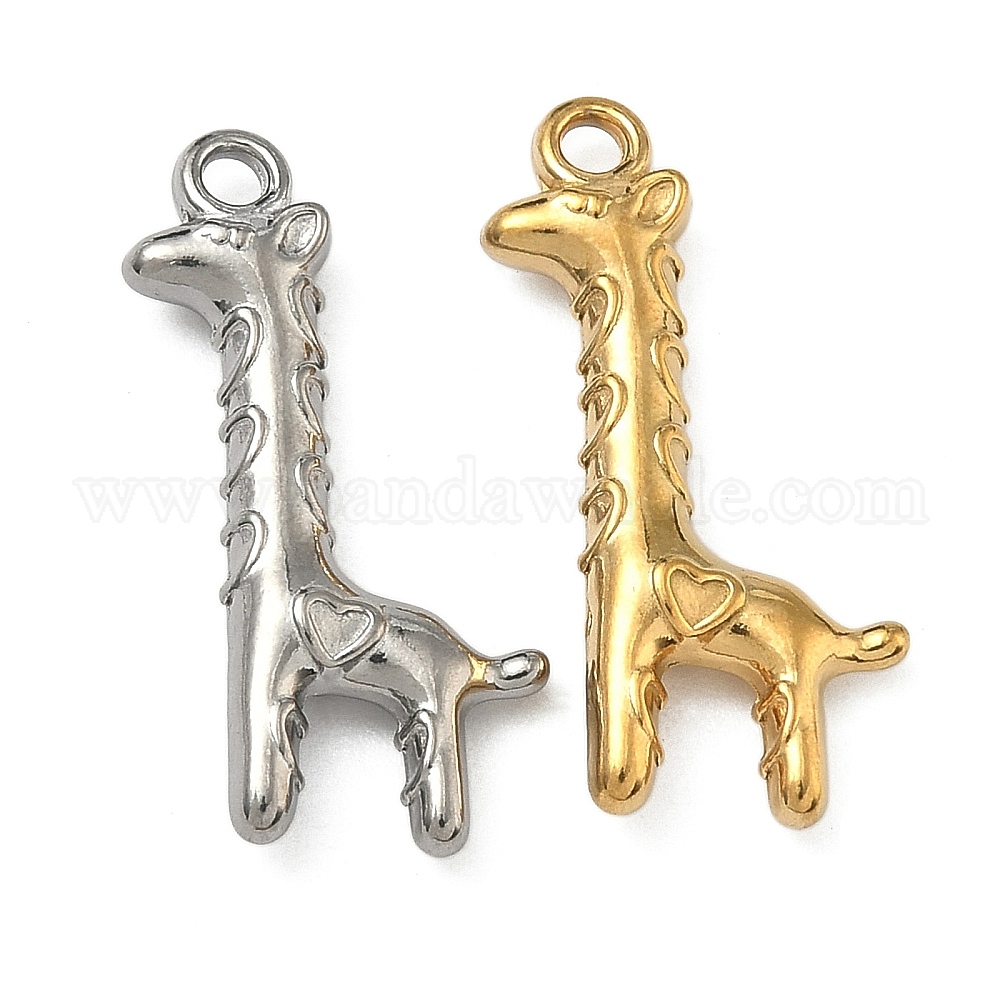 • Настоящее золото 18K 304 подвески из нержавеющей стали, очарование жирафа, ионное покрытие (ip), долговечный, реальный 18 k позолоченный, 24x12x4 мм, отверстие : 1.8 мм