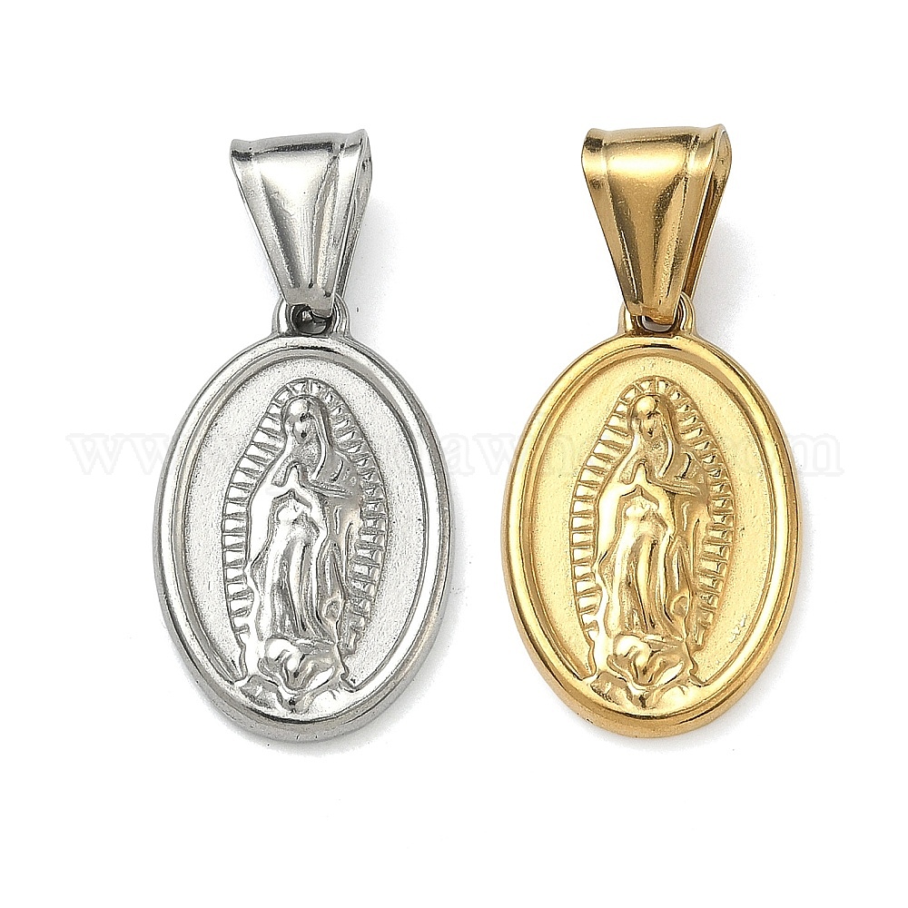 Религиозные 304 подвески из нержавеющей стали, овальный с подвеской в виде Девы Марии Гваделупской