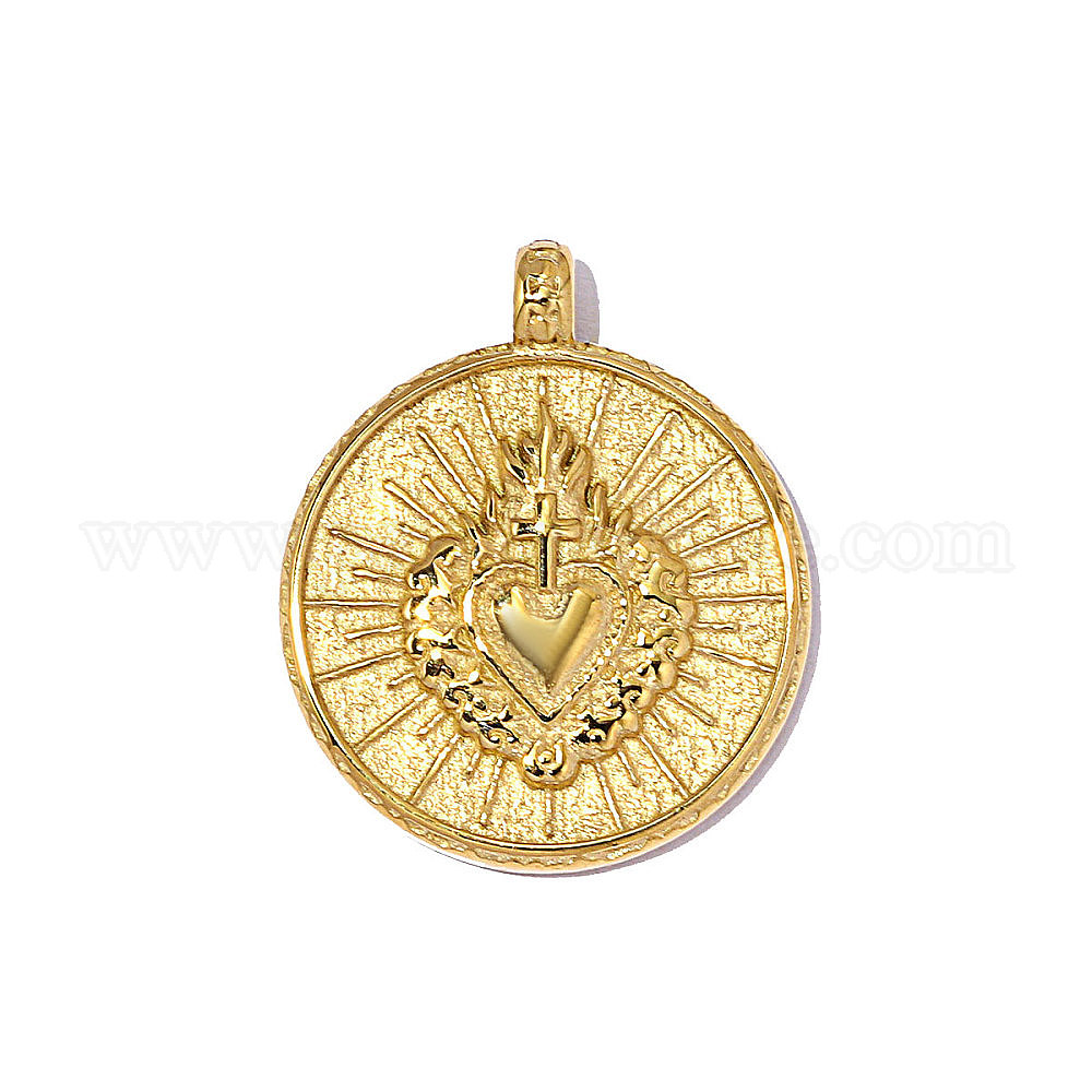 304 подвески из нержавеющей стали, плоский круглый с сердечками, зеркальная полировка, ионное покрытие (ip)