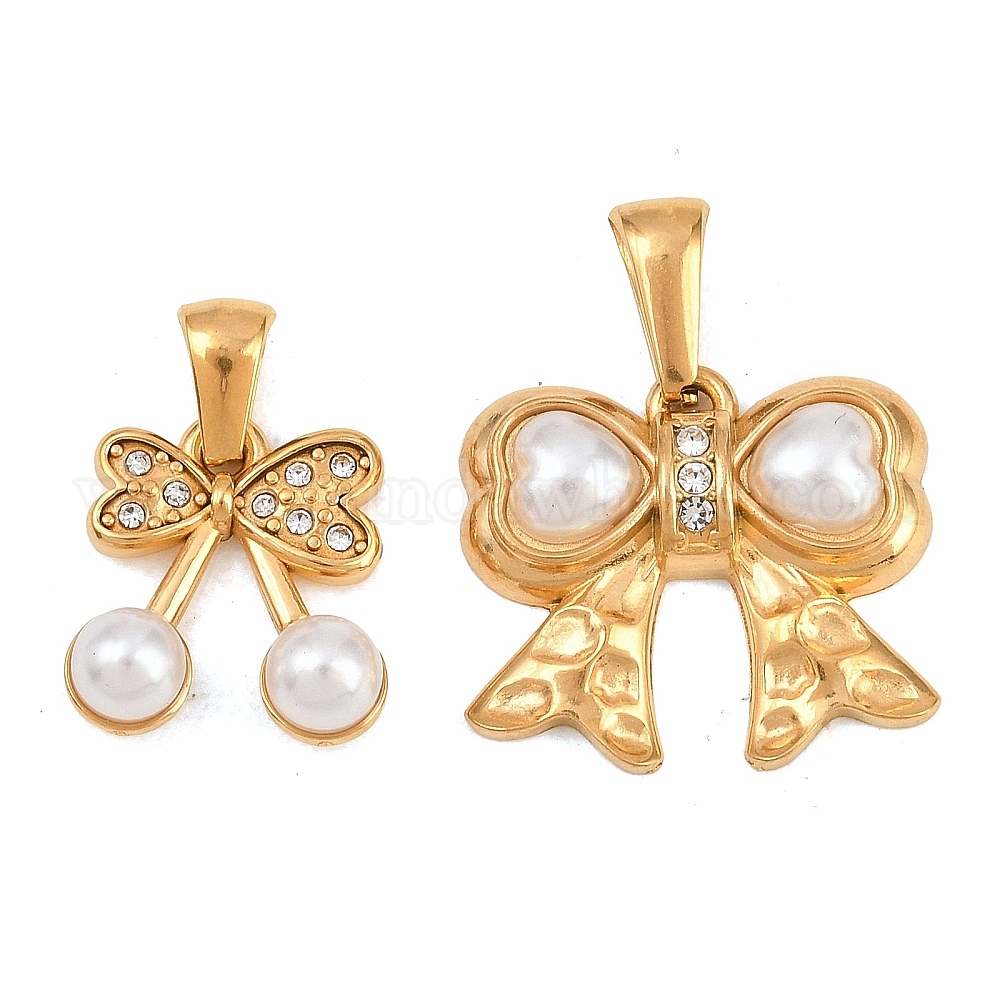 304 Подвески из нержавеющей стали и пластика с имитацией жемчуга, бантом прелести, со стразами
