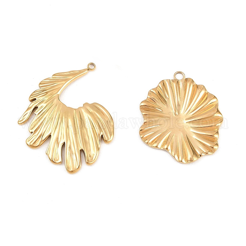• Золотой 304 подвески из нержавеющей стали, очарование листа, золотые, 36.5x31x2.5 мм, отверстие : 1.8 мм