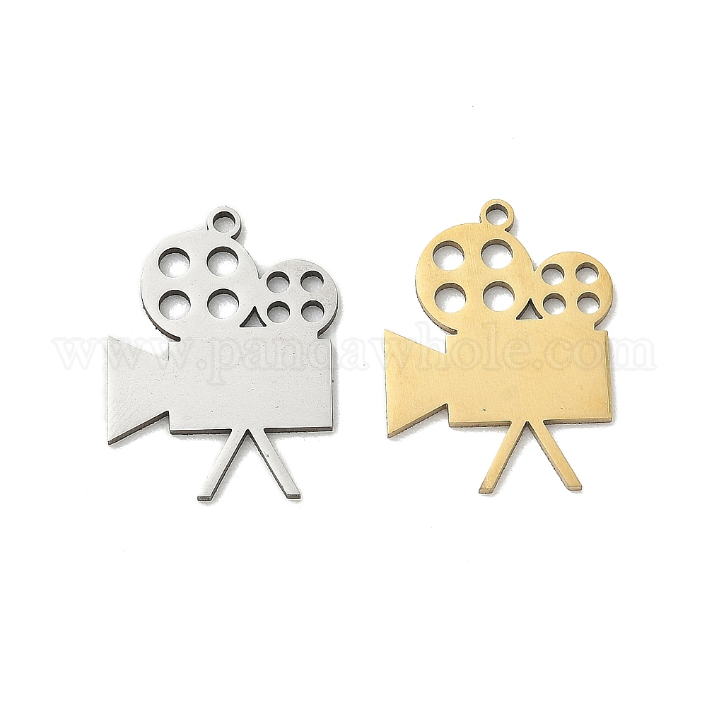 • Золотой 201 подвески из нержавеющей стали, подвески для кинопроектора, золотые, 21.5x16x1 мм, отверстие : 1.5 мм