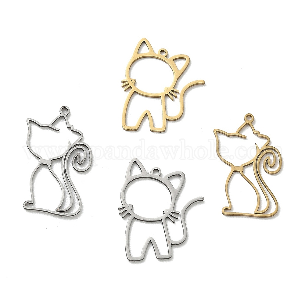 • Золотой Полые 201 из нержавеющей стали кулоны, подвески в форме кошки, золотые, 25.5x20x1 мм, отверстие : 1.4 мм