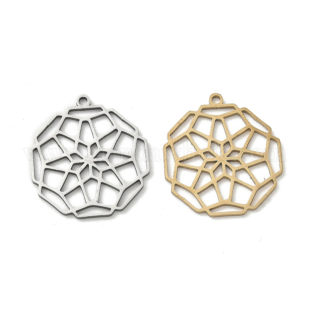 Полые 201 из нержавеющей стали кулоны, восьмиугольные подвески-мандалы