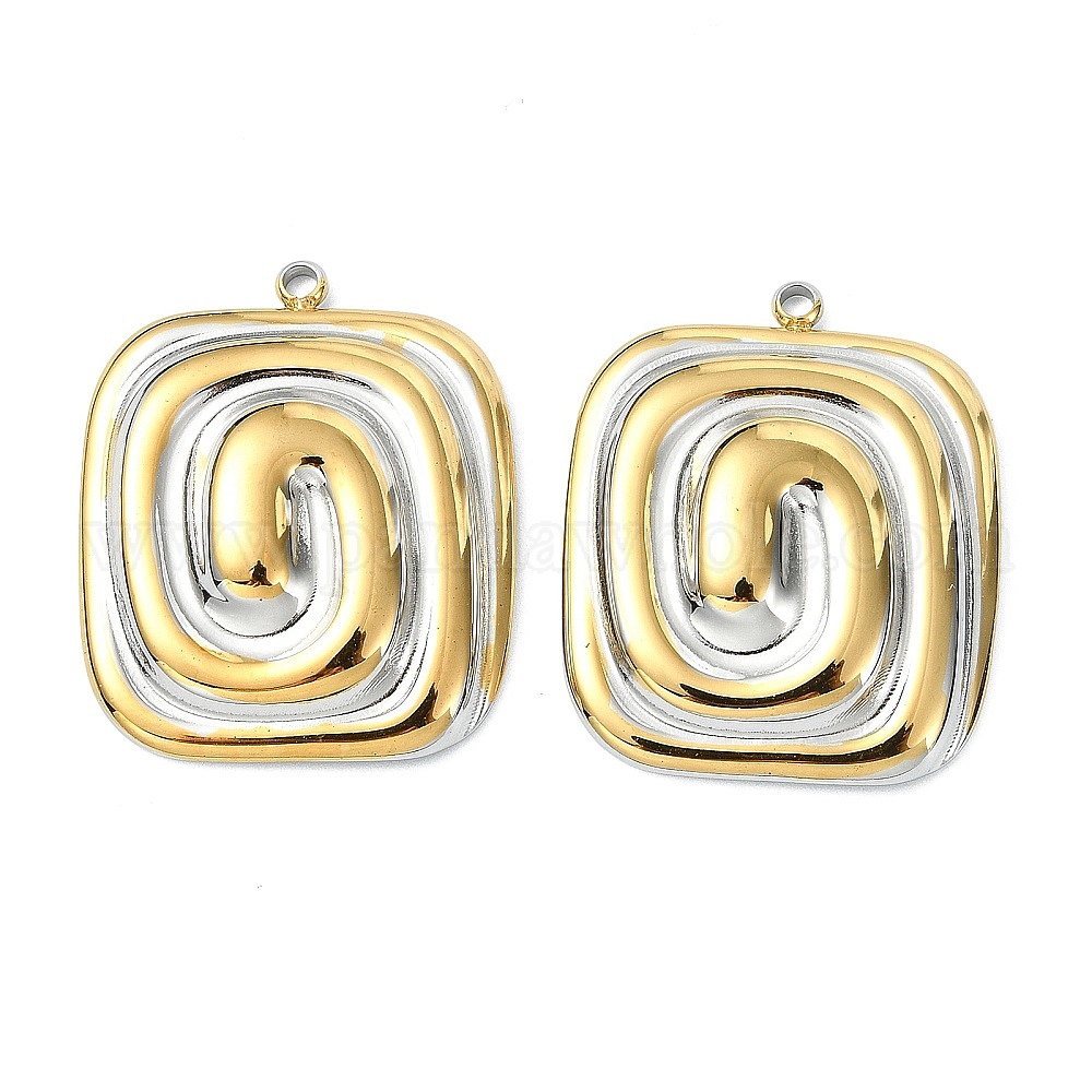 • Позолоченный и Цвет Нержавейки Два тона 304 из нержавеющей стали подвески, спиральный квадратный кулон, вакуумное покрытие pvd, долговечный, настоящее золото и нержавеющая сталь, 29x24x5 мм, отверстие : 1.8 мм