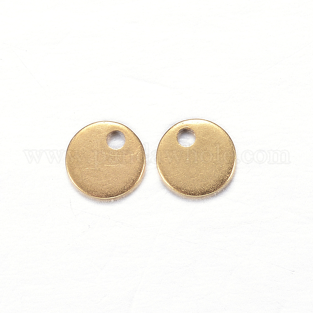 • Золотой Ионное покрытие (ip) 304 брелоки из нержавеющей стали, плоско-круглые, штамповка пустой метки, золотые, 4x0.5 мм, отверстие : 1 мм