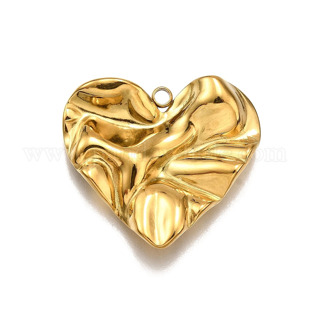 • Настоящее золото 18K 304 подвески из нержавеющей стали, очарование забитого сердца, реальный 18 k позолоченный, 23.5x26.5x3.5 мм, отверстие : 2 мм