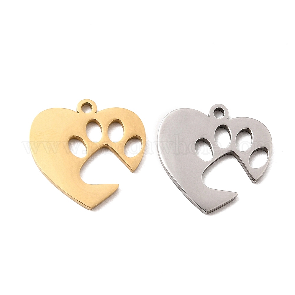 • Нержавеющая Сталь Цвет 304 подвески из нержавеющей стали, подвеска в виде отпечатка лапы в форме сердца, цвет нержавеющей стали, 16.5x16.5x1.5 мм, отверстие : 1.5 мм