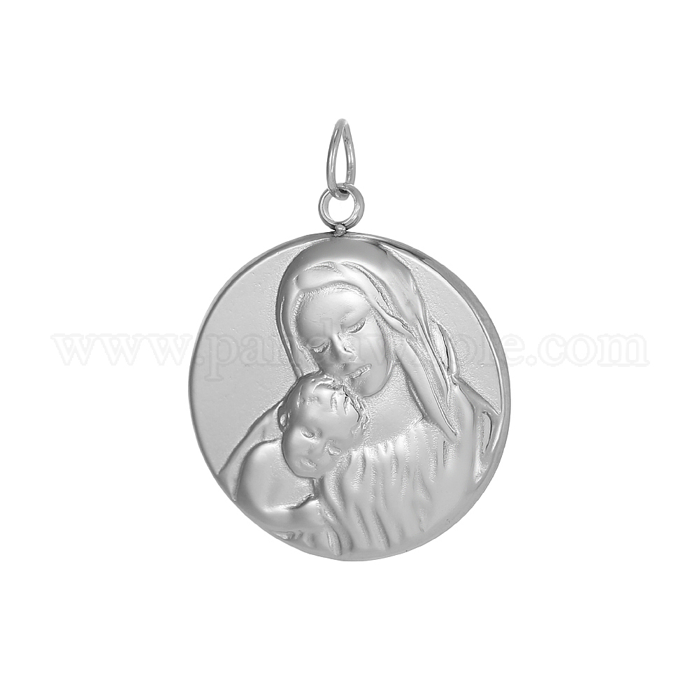 День матери 304 кулоны из нержавеющей стали, плоский круглый с подвесками Девы Марии, с целью перехода в кольце