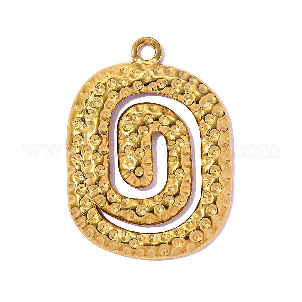 • Настоящее золото 18K Кованые 304 подвески из нержавеющей стали, спиральный овальный брелок, ионное покрытие (ip), долговечный, реальный 18 k позолоченный, 34x25 мм, отверстие: 2.40 мм