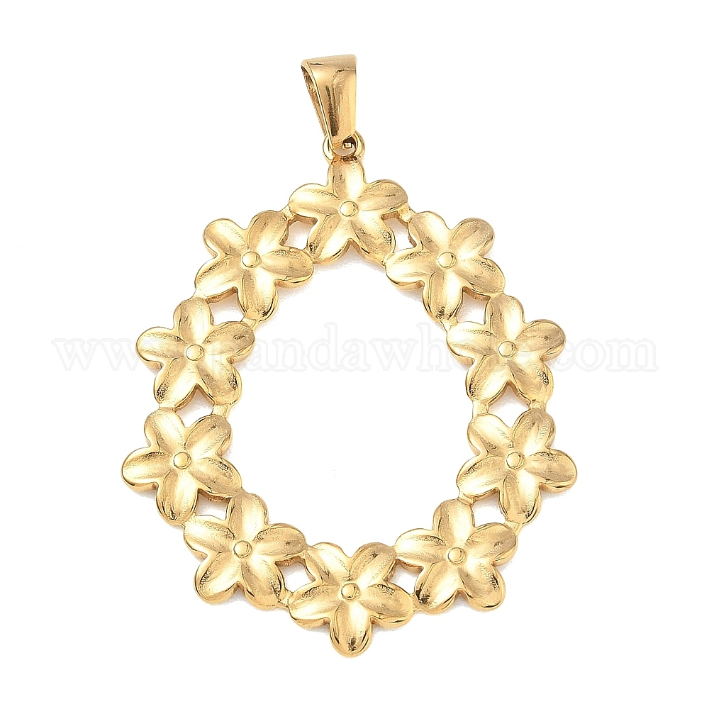 • Настоящее золото 18K 304 подвески из нержавеющей стали, овальный подвесной элемент в виде цветочного венка, ионное покрытие (ip), долговечный, реальный 18 k позолоченный, 43x34x1.5 мм, отверстие : 6x3 мм