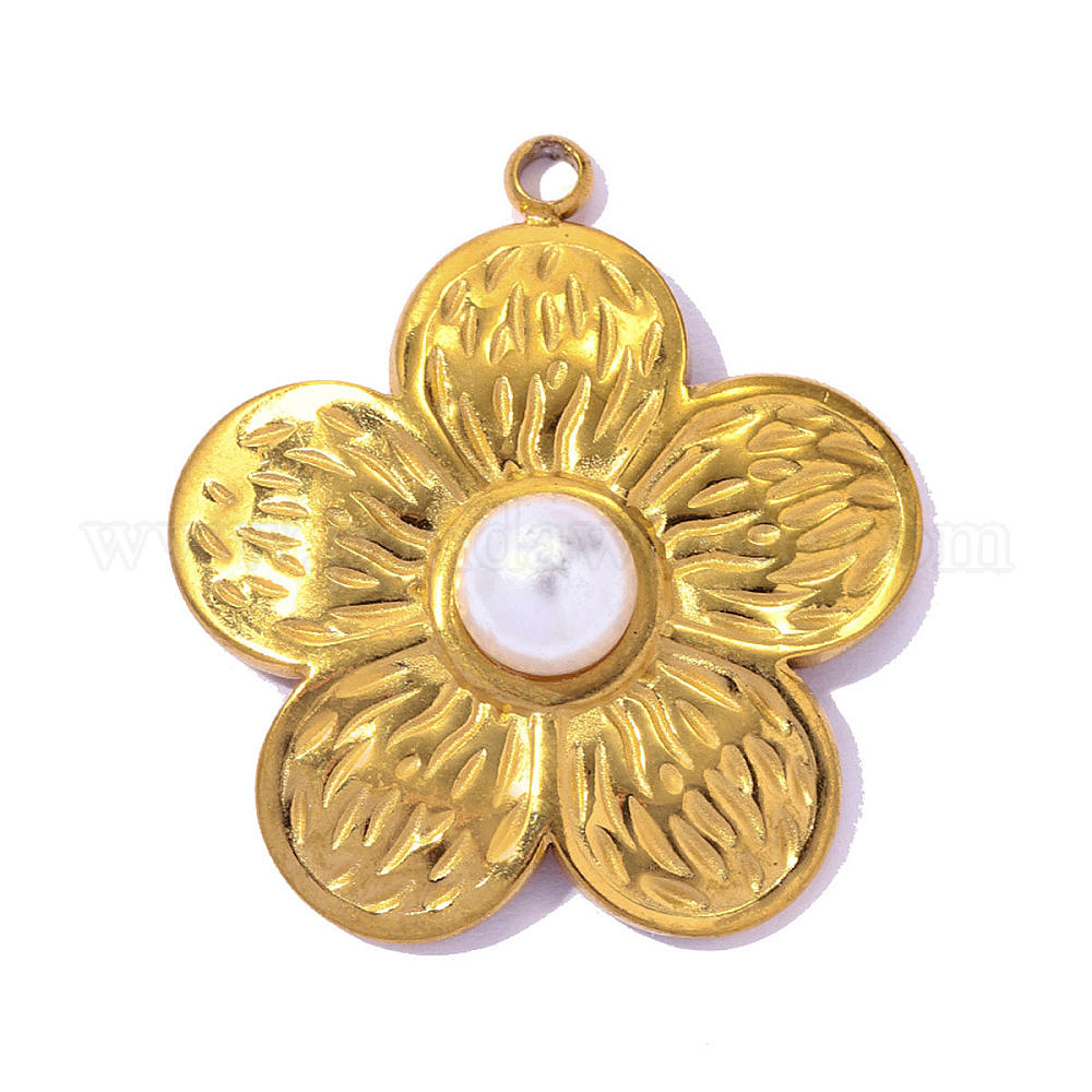 304 Подвески из нержавеющей стали и АБС-пластика с имитацией жемчуга, цветочный шарм, ионное покрытие (ip), долговечный, реальный 18 k позолоченный
