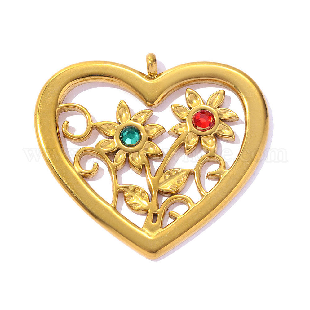304 из нержавеющей стали горный хрусталь подвески, сердце с подвеской в виде подсолнуха, ионное покрытие (ip), долговечный