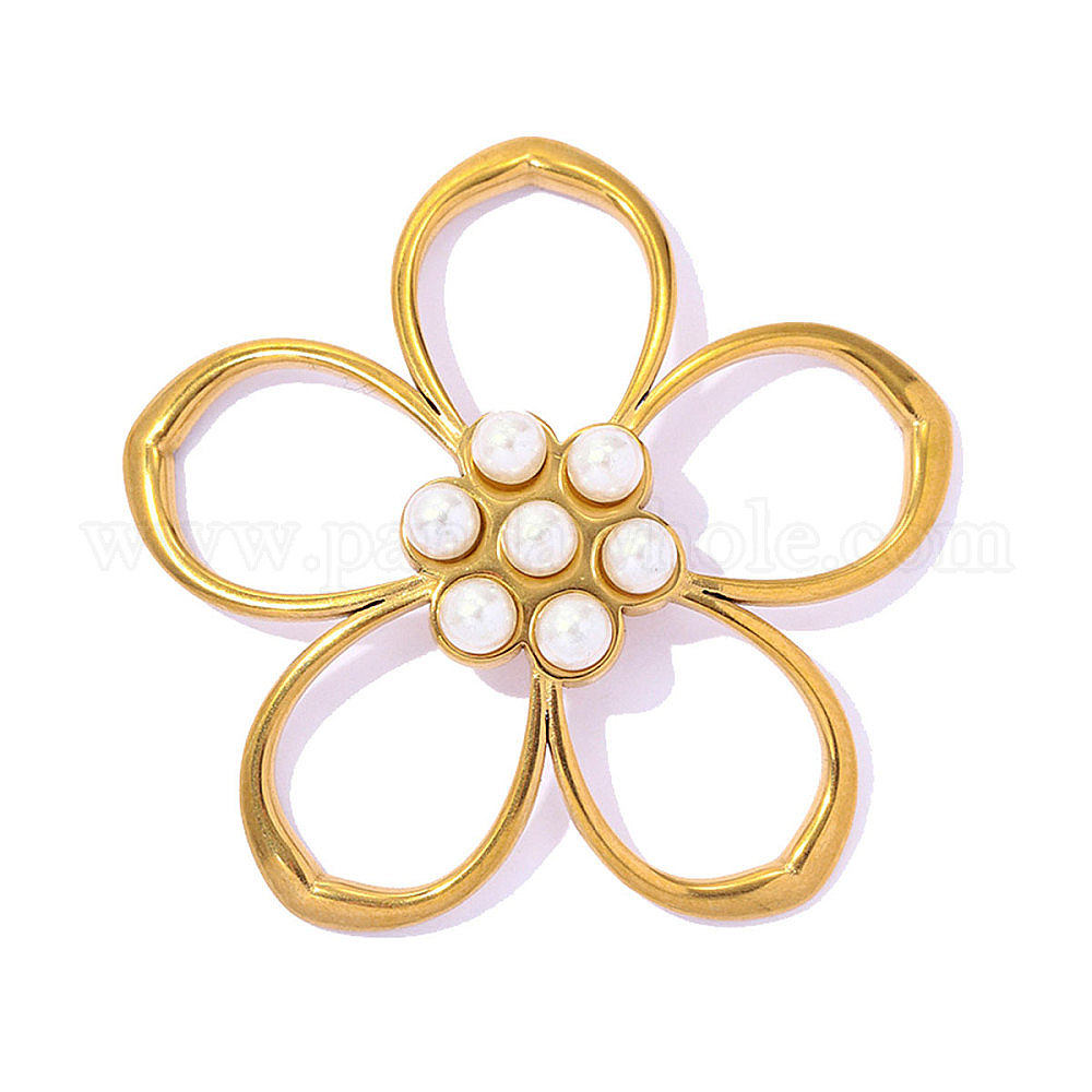 Полые 304 подвески из нержавеющей стали и АБС-пластика с имитацией жемчуга, цветочный шарм, ионное покрытие (ip), долговечный (03BY8G)