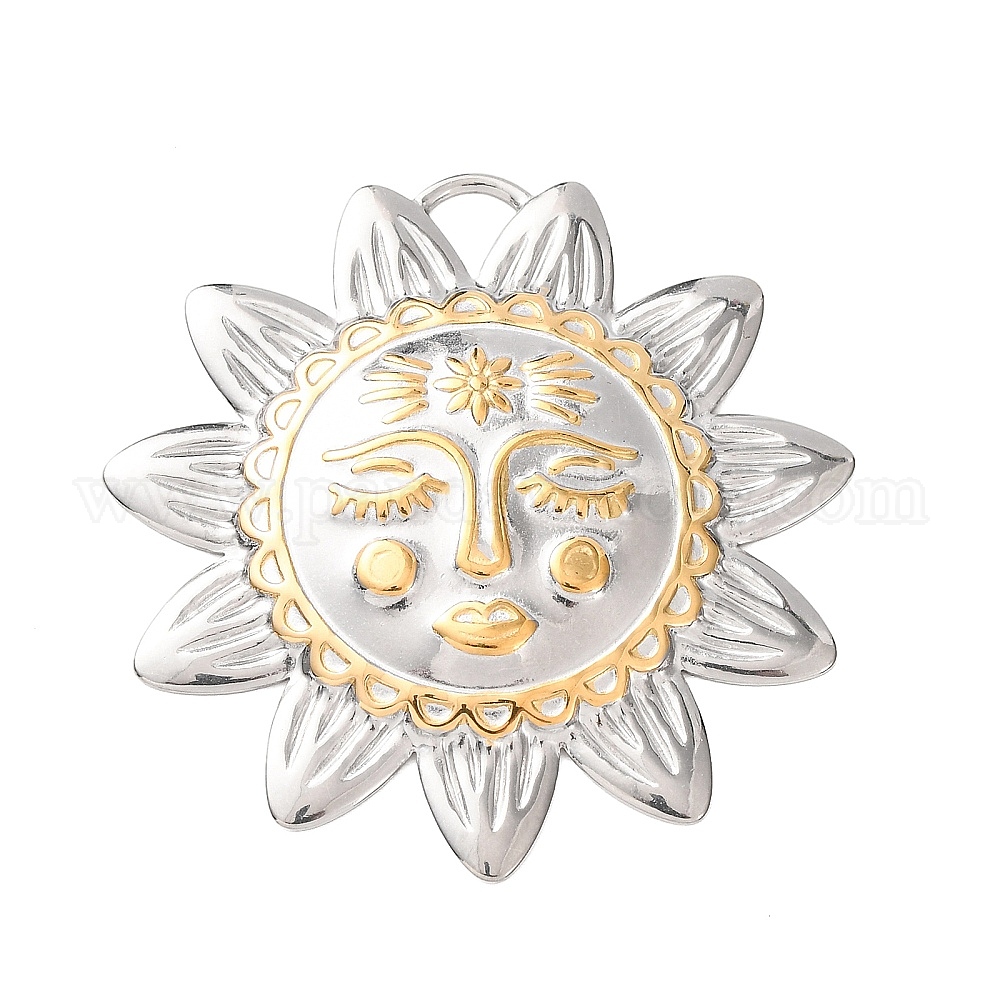 304 подвески из нержавеющей стали, подсолнечник, ионное покрытие (ip), золотые и нержавеющая сталь цвет, 49x48.5x3 мм, отверстие : 6x6 мм