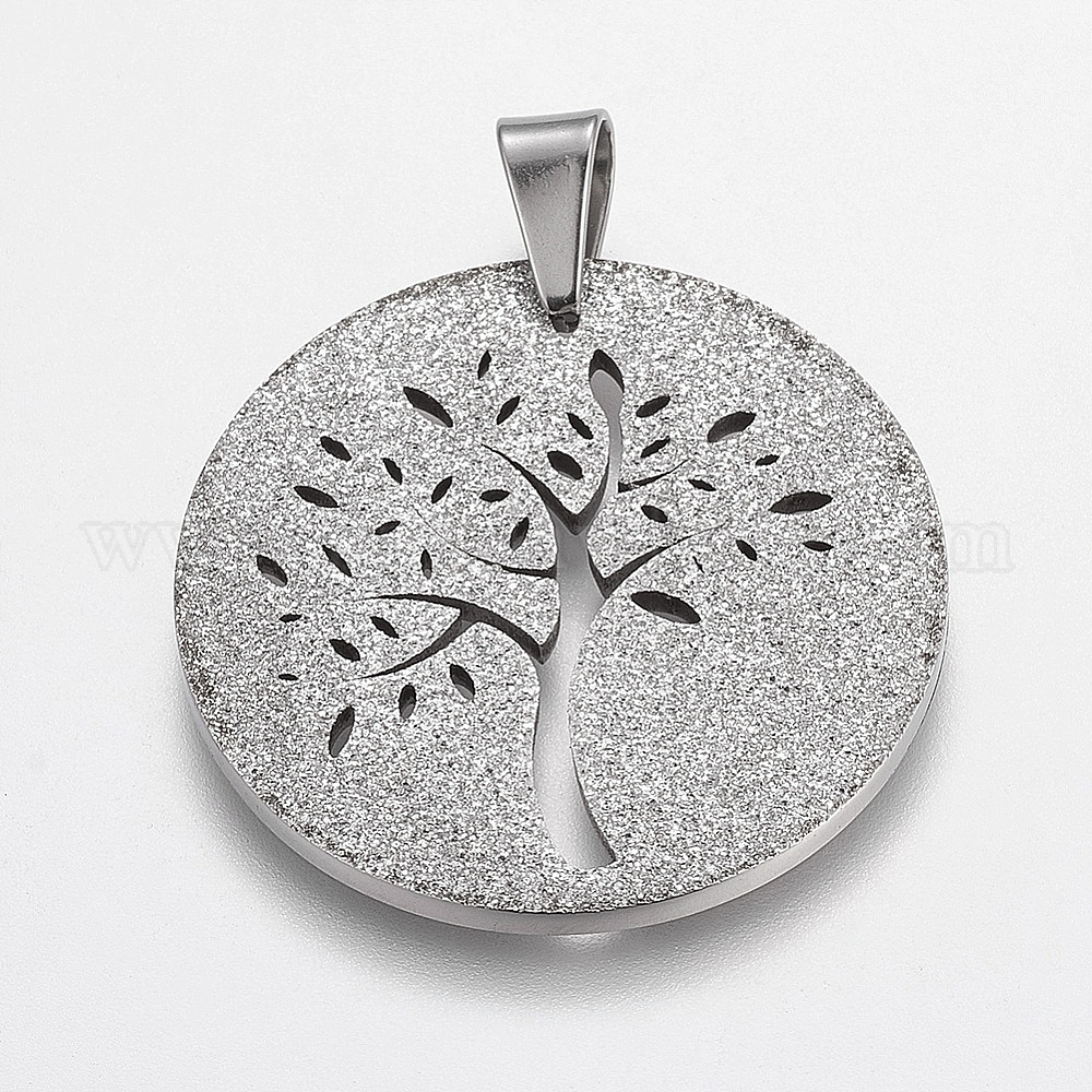 Модная плоская круглая подвеска с подвесками из дерева 304 текстурированные подвески из нержавеющей стали, 35x36x2 мм, отверстие : 8x6 мм