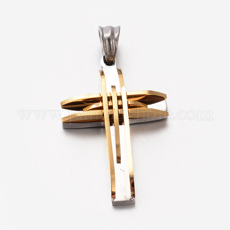 Мужские ювелирные изделия из нержавеющей стали 201 кросс подвески, 33.5x22x4.5 мм, отверстие : 5x6 мм