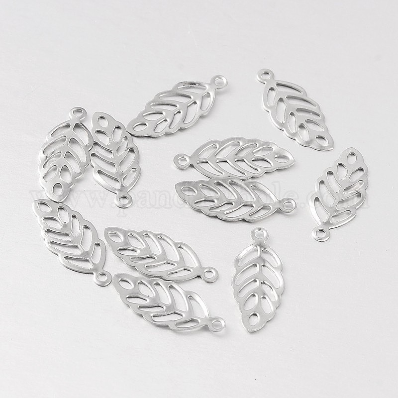 Полый лист 316 хирургические брелоки из нержавеющей стали, 13x5x1 мм, отверстие : 0.5 мм