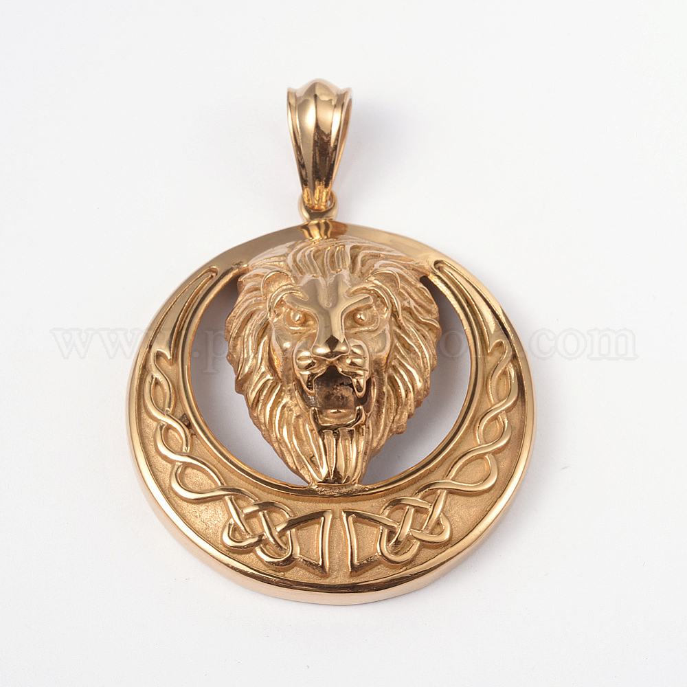 316 большие подвески из хирургической нержавеющей стали, плоские круглые со львом, 56x50x21 мм, отверстие : 7x12 мм