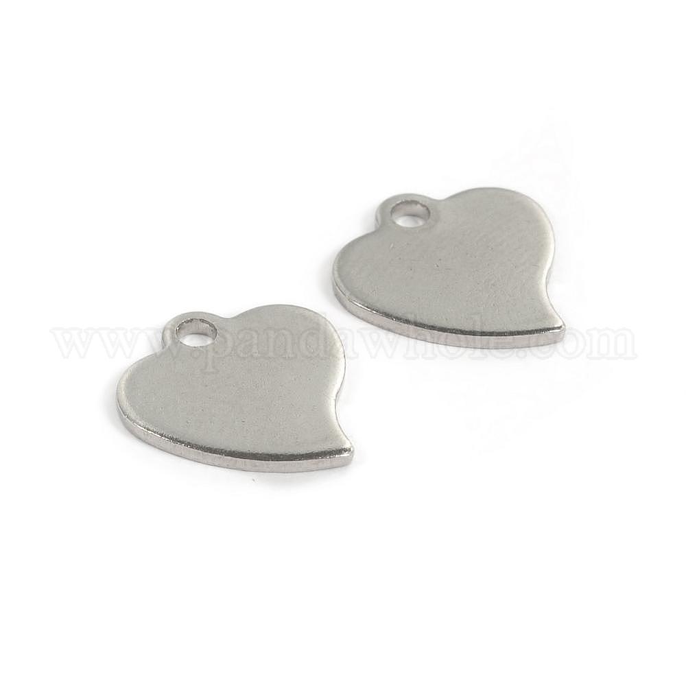 • Нержавеющая Сталь Цвет Устойчивые к потускнению 304 подвески из нержавеющей стали, сердце, тег амулеты, цвет нержавеющей стали, 13x12x1 мм, отверстие : 1.5 мм