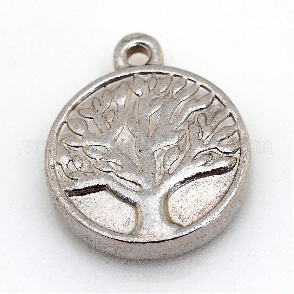304 подвески из нержавеющей стали, плоские круглые с дерева жизни