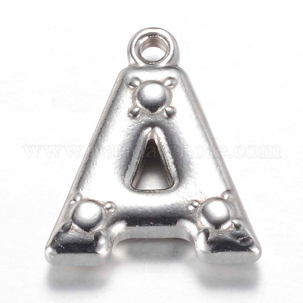• Letter A Устойчивые к потускнению 201 подвески из нержавеющей стали, буква a, letter.a, 15.2x13x3 мм, отверстие : 1.2 мм