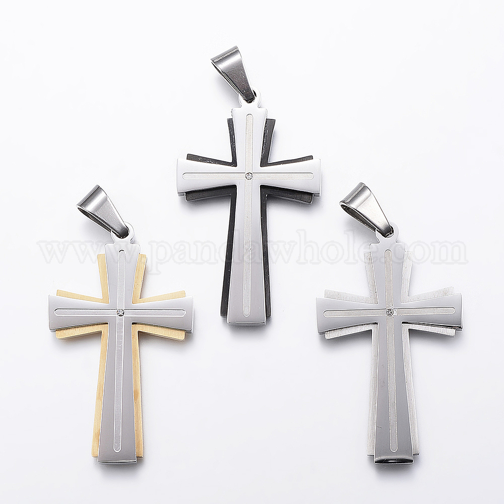 304 из нержавеющей стали большие кулоны, крестик, со стразами