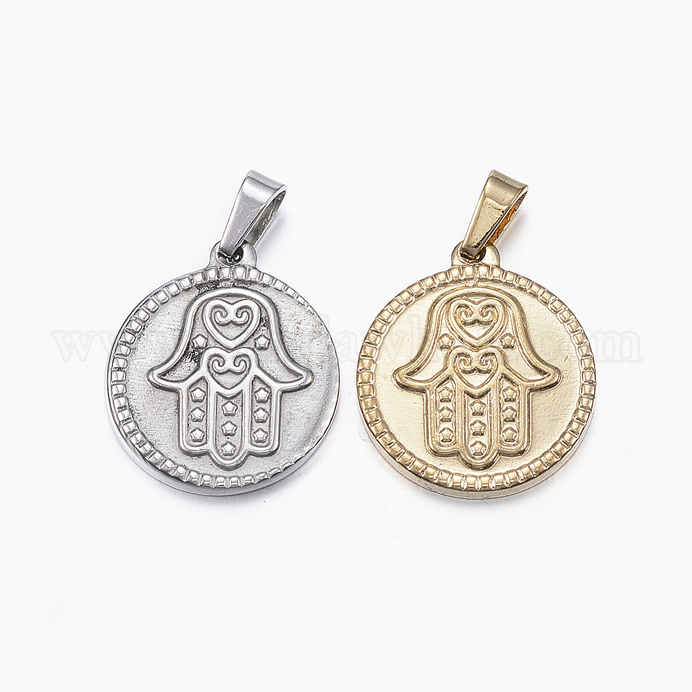 Ионное покрытие (ip) 304 подвески из нержавеющей стали, плоский круглый с hamsa рука / рука fatima / рука miriam