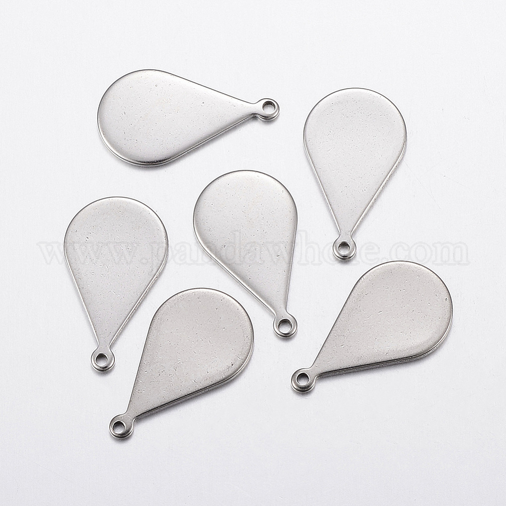 • Нержавеющая Сталь Цвет Устойчивые к потускнению 304 штампованные пустые бирки из нержавеющей стали, слеза, цвет нержавеющей стали, 18x10x1 мм, отверстие : 1 мм