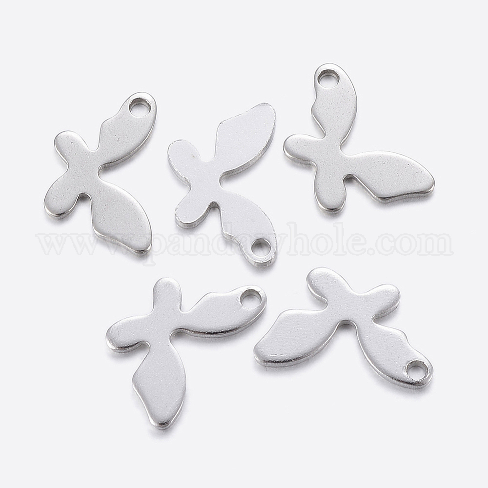 • Нержавеющая Сталь Цвет Устойчивые к потускнению 304 подвески из нержавеющей стали, бабочка, цвет нержавеющей стали, 9x14x0.8~1 мм, отверстие : 1~1.2 мм