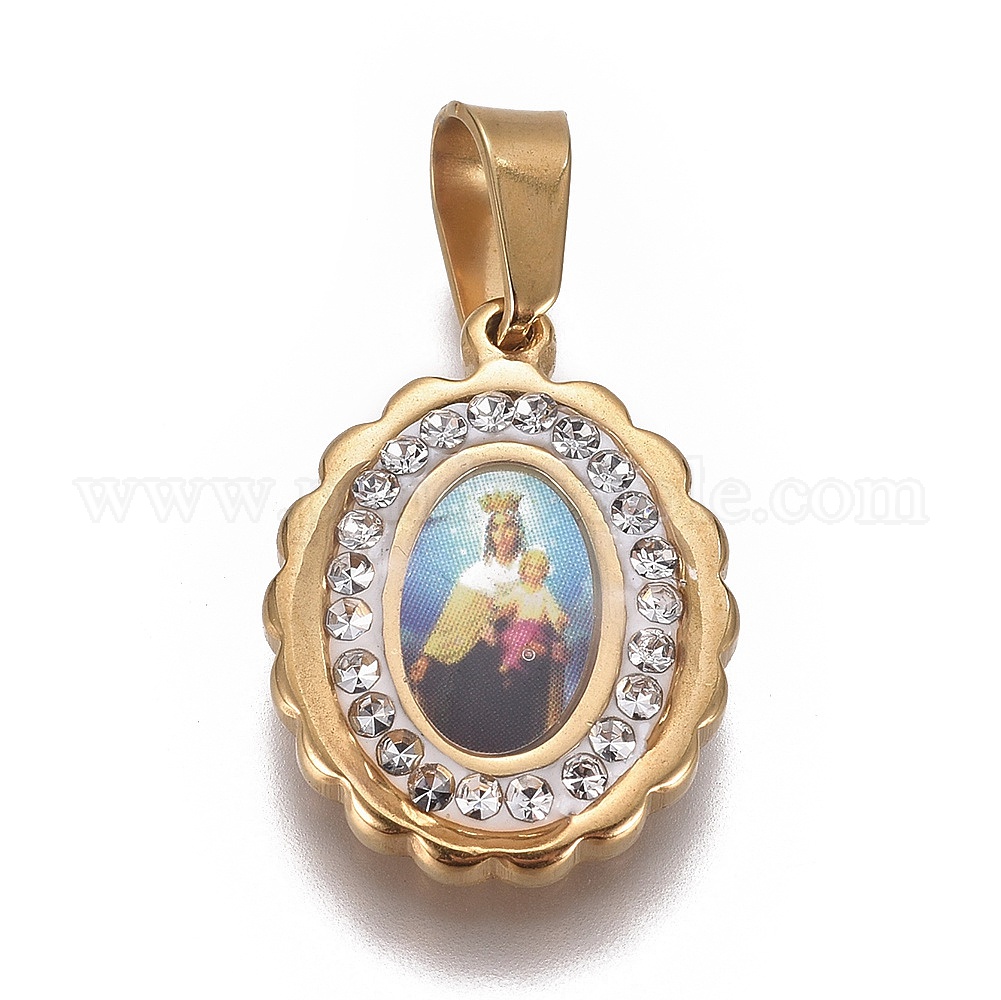 304 подвески из нержавеющей стали, с полимерной глиной горный хрусталь, овальные с рисунками " virgin mary"