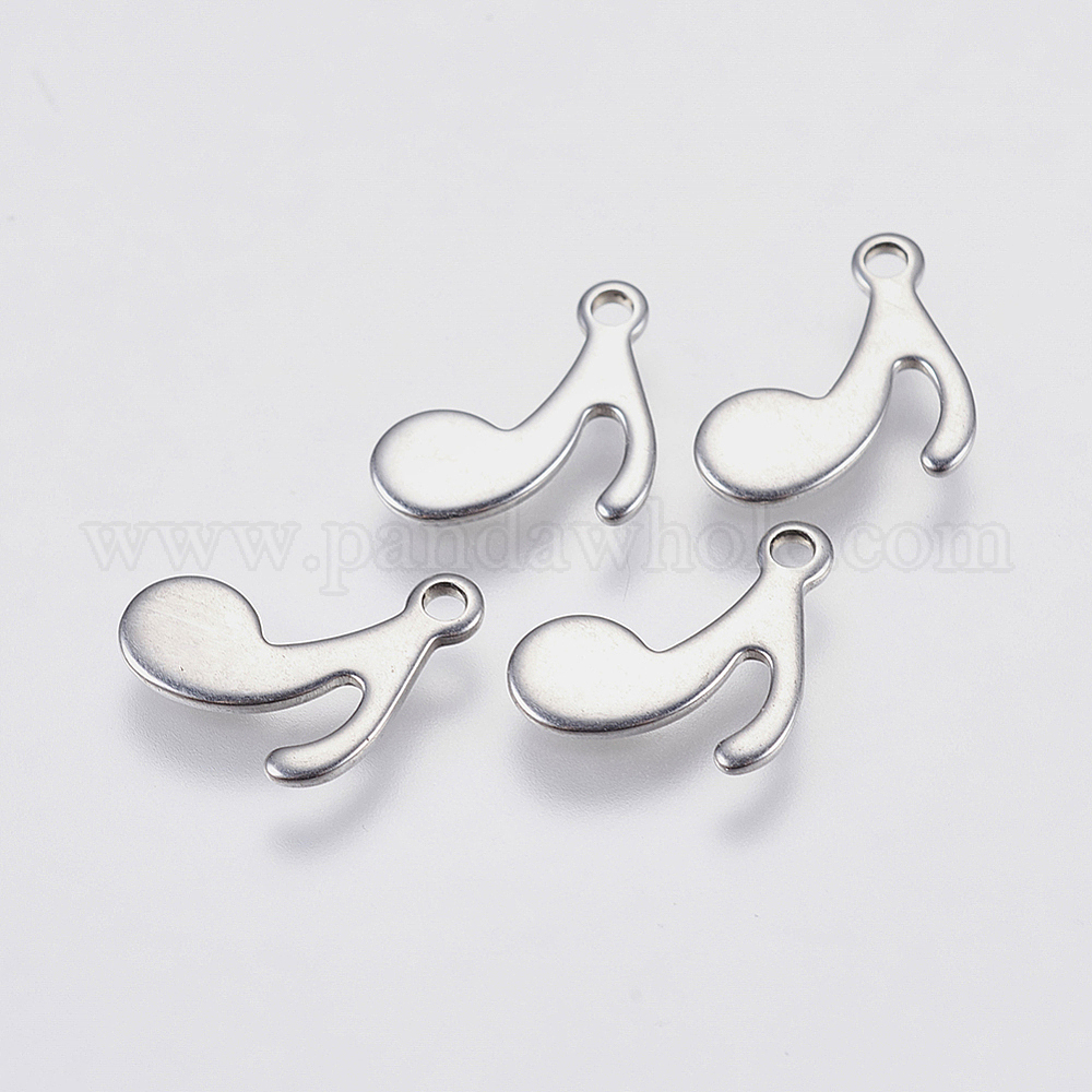 • Нержавеющая Сталь Цвет Устойчивые к потускнению 201 подвески из нержавеющей стали, музыкальная нота, цвет нержавеющей стали, 12x8x0.8 мм, отверстие : 1 мм