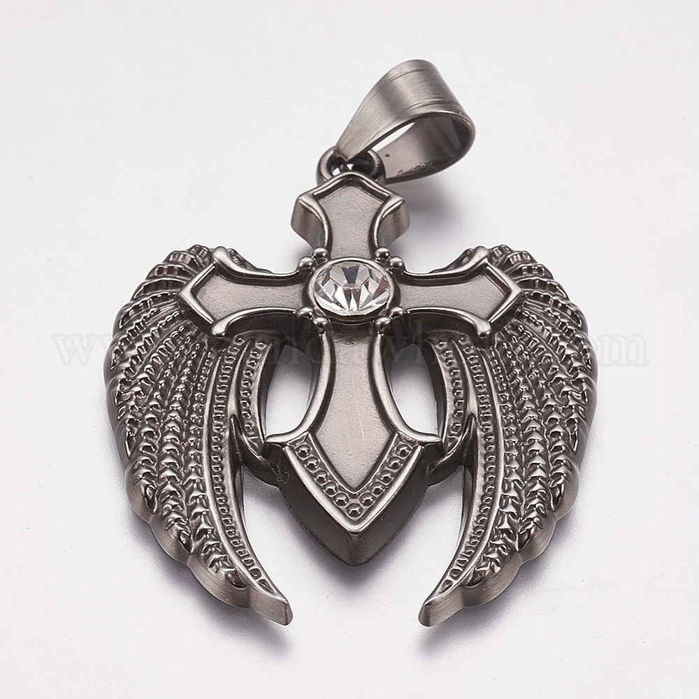 304 подвески из нержавеющей стали, со стразами, крыло с крестом, кристалл