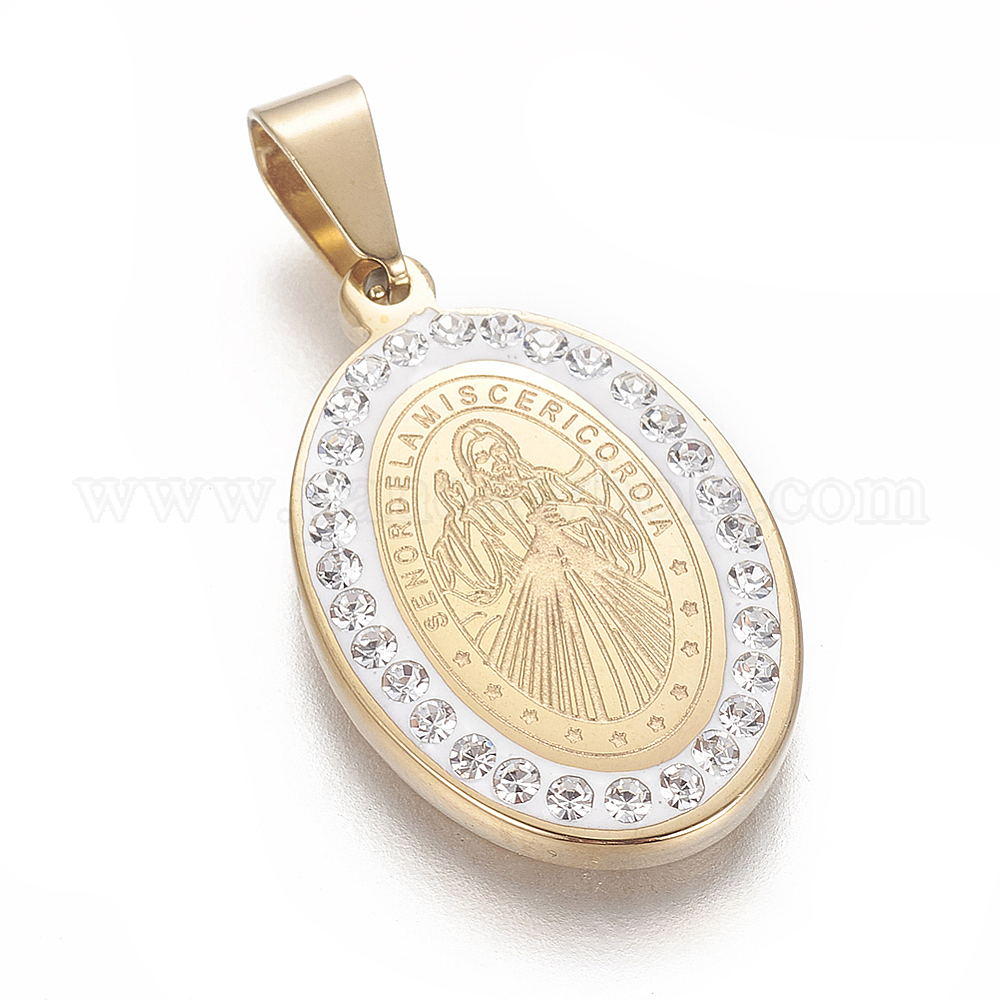 304 подвески из нержавеющей стали, с полимерной глиной горный хрусталь, овальный с Иисусом и словом сострадание Бога