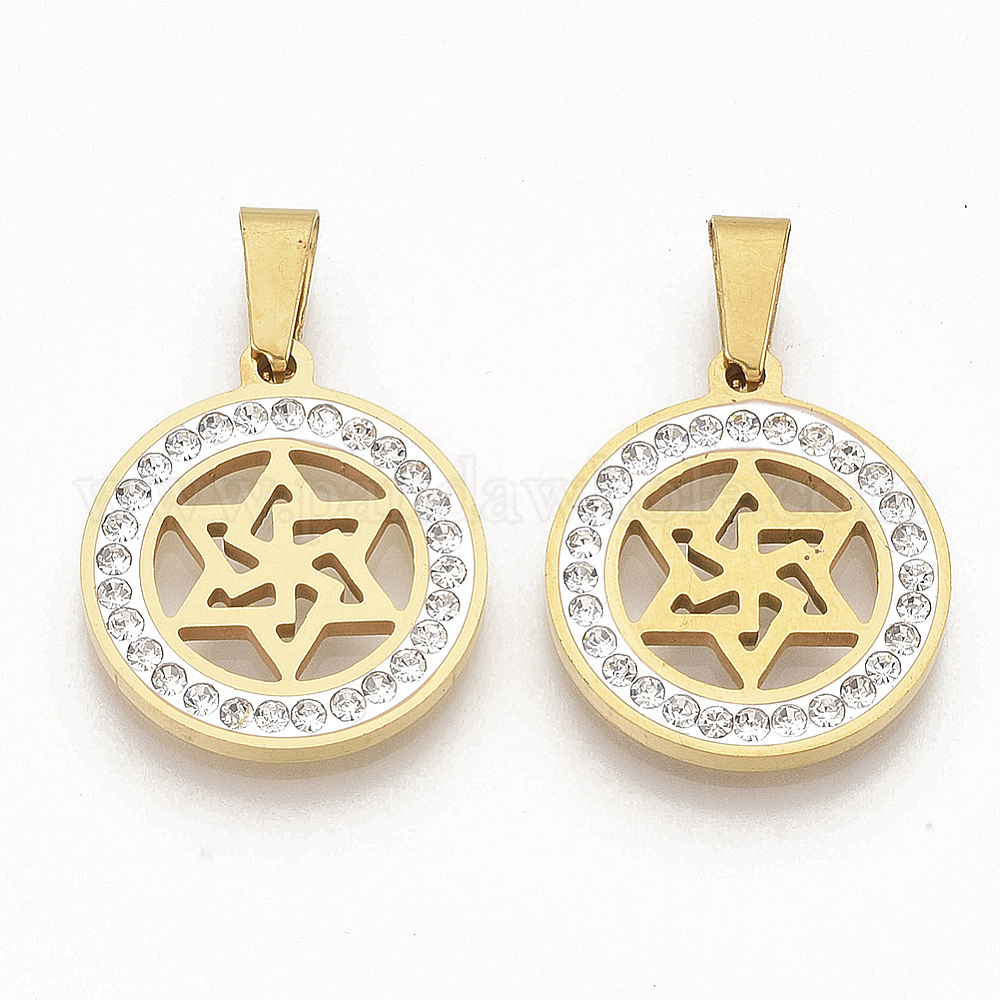 201 подвески из нержавеющей стали, со случайным размером оснастки на поручителях и стразами из полимерной глины и хрусталя, для евреев, плоские круглые со звездой Давида