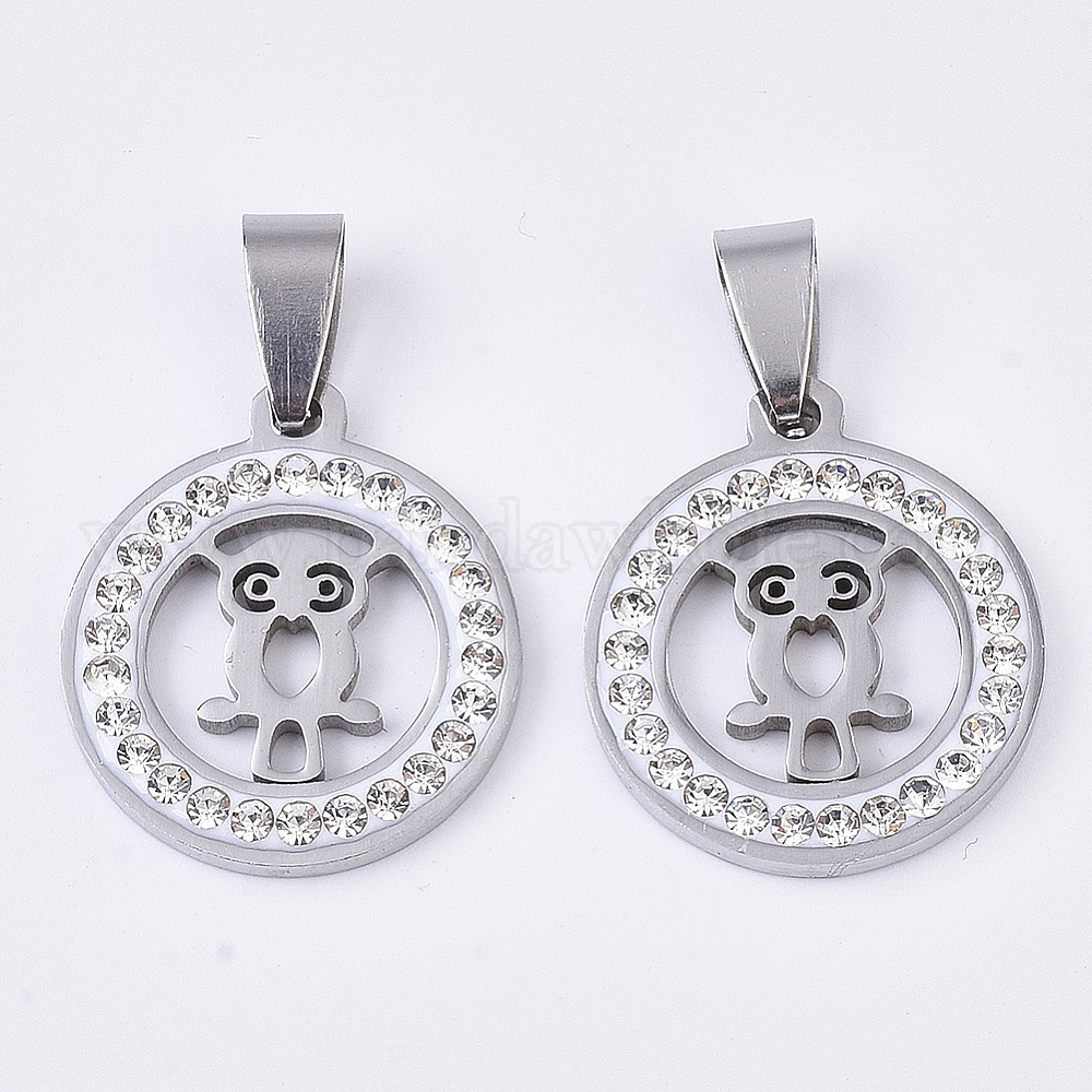 201 подвески из нержавеющей стали, со случайным размером оснастки на поручителях и стразами из полимерной глины и хрусталя, плоские круглые с совой