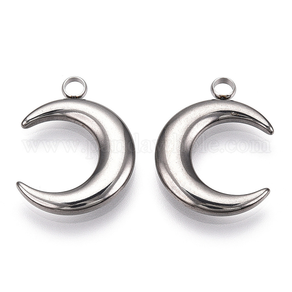 • Нержавеющая Сталь Цвет Не тускнеющие 201 подвески из нержавеющей стали, полумесяц, цвет нержавеющей стали, 23.5x18x3 мм, отверстие : 2.5 мм